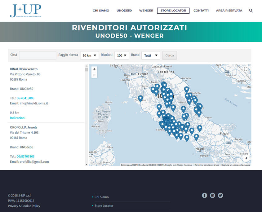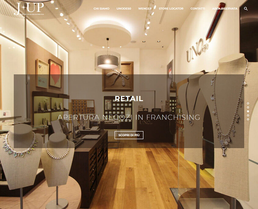 azienda specializzata nella distribuzione e nel commercio retail di gioielleria. Partner italiano in esclusiva per il brand spagnolo UNOde50. Premiata da un successo che conta una vasta rete di punti vendita retail e l’apertura di due negozi monomarca UNOde50 a Torino e Genova, l’azienda ha commissionato a Deltamatica la realizzazione di un sito elegante, di grande impatto visivo e dotato di uno store locator geolocalizzato per la ricerca tra oltre 600 negozi.
